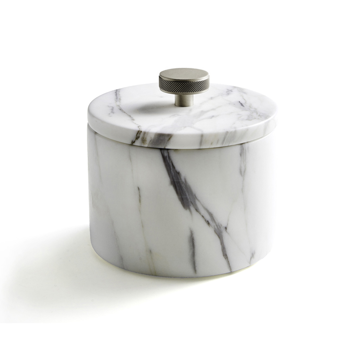 AP48ANKAP48ANK | 3SC APUANA 2.0 Баночка универсальная, D=8,5/h12 см, с крышкой, настольная,цвет: мрамор Bianco Statuario/Nickel Satinato Lucido |