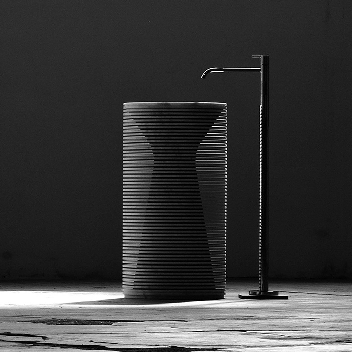 | INTROVERSO1INTROVERSO1 | ANTONIO LUPI INTROVERSO Раковина напольная Ø450х850 мм., слив в пол, с самотёчным донным клапаном, сифоном и гибким шлангом, Marmo Carrara |