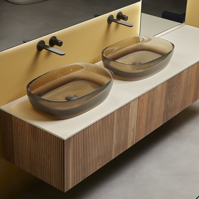 | SENSOC Nebbia/crSENSOC Nebbia/cr | Antonio Lupi Senso Раковина накладная 60х40х15 см, без отв под смес, без перелива, с д/клапаном (хром), мат-л: Cristalmood, цвет: Nebbia |