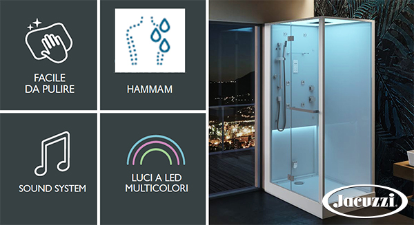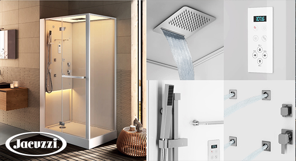 В комплектацию душевой кабины Bali, от фабрики Jacuzzi входит: